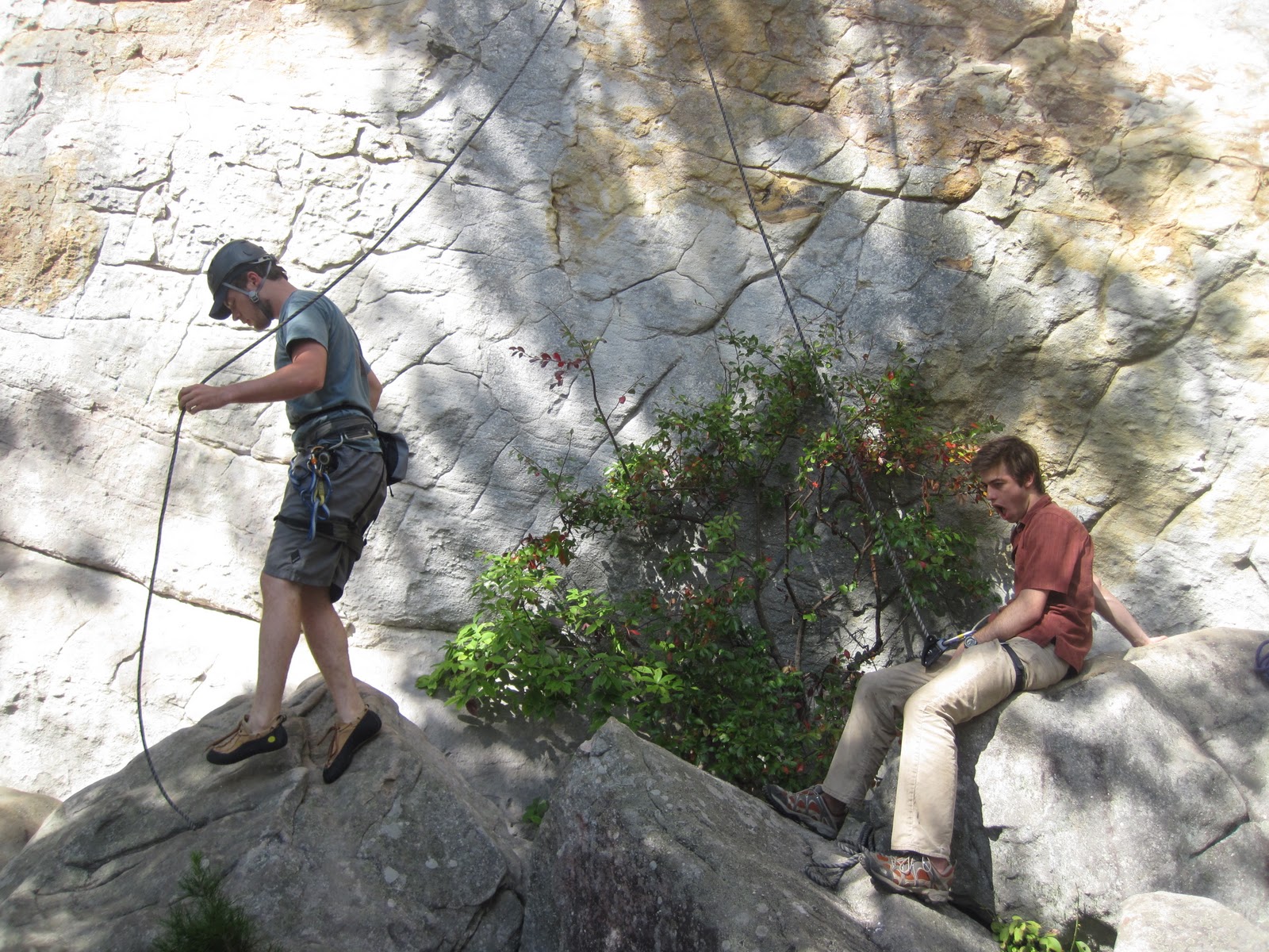 | Fearless leader Jefe about to climb, belayed by the Fearless Assistant Gray |